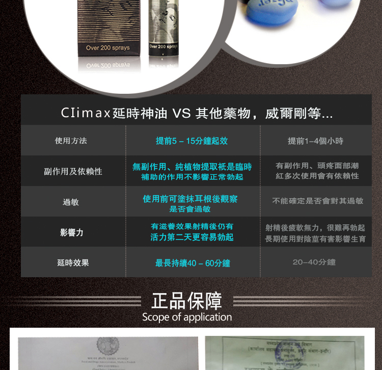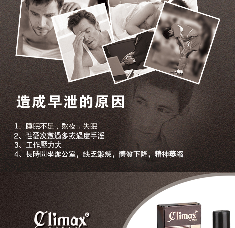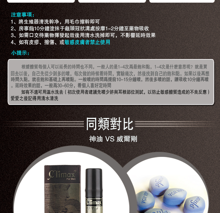 1.climax持久性噴劑專為東方男性研發延時效果顯著,持久同時更加威猛!充分滿足幸伴侶!